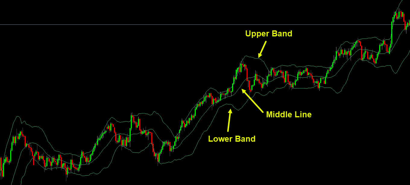 Imagine price moving inside a flexible channel that expands and contracts depending on how wild price swings are. That’s basically what Bollinger Bands are.