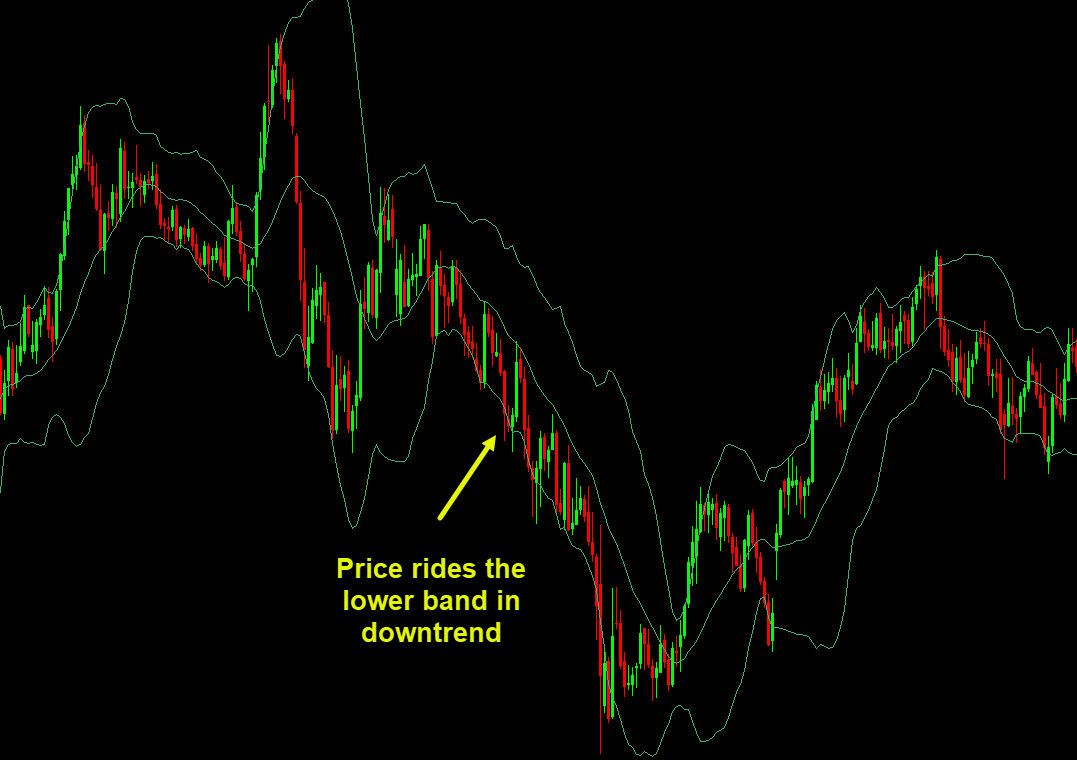 ✔️ Price will ride the lower band in a downtrend