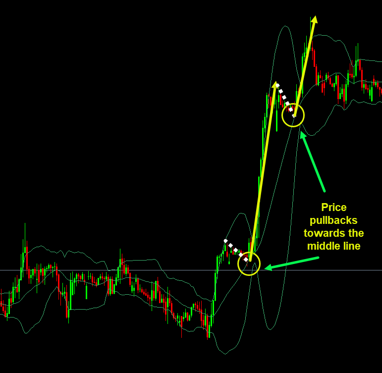 Strategy 3: Pullback Toward the Middle Line or Opposite Band From Key Levels