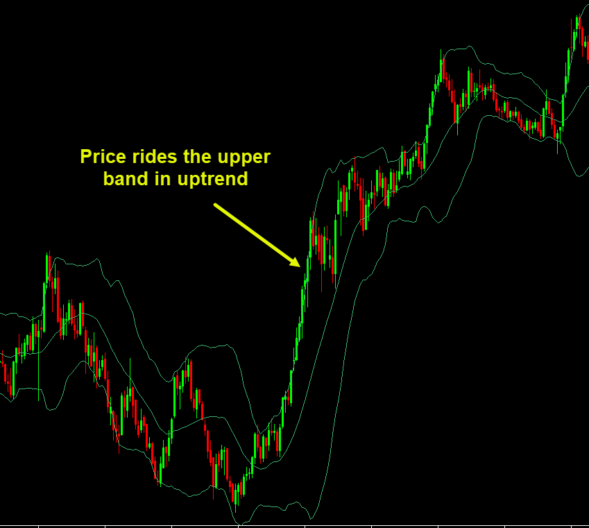 If price keeps hitting the band like a dog chasing a stick, momentum is intact.