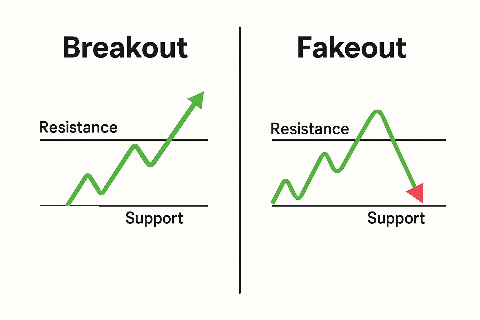 What exactly a breakout and a fakeout are.