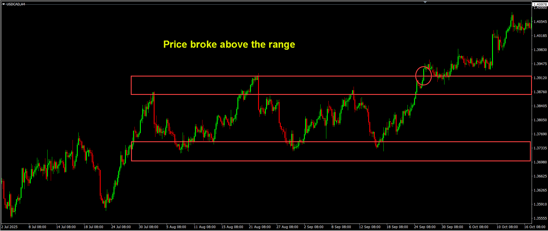 A breakout may signal a shift: new buyers (or sellers) overpowering the previous range.