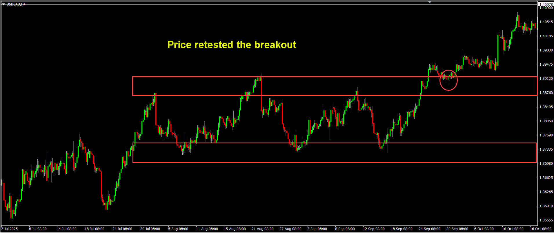 If no retest occurs, you can still enter after the break if the breakout has strong momentum and your risk is defined.