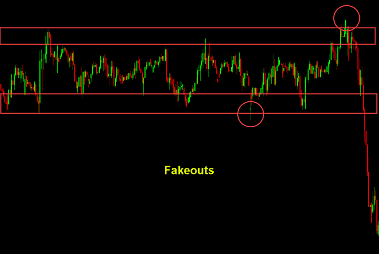 Special note: Sometimes fakeouts offer trade opportunities after the fake. For example: price breaks up, traps bulls, reverses down. If you spot the trap and identify the reversal, you may take the opposite trade (but this requires skill and strict risk control).