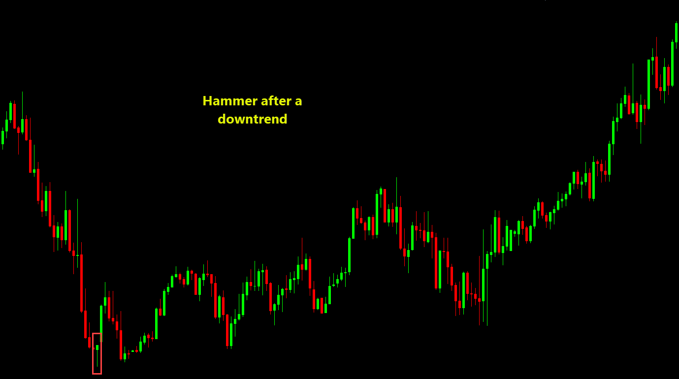 A hammer in the middle of a strong uptrend isn’t necessarily a reversal. Without a trend down or a support level, the psychological shift is weak.