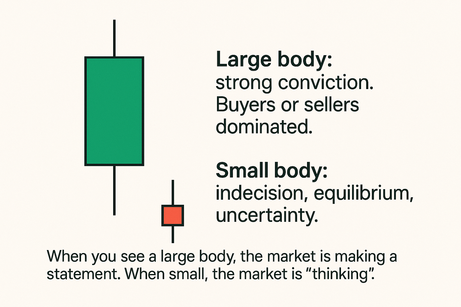 When you see a large body, the market is making a statement. When small, the market is “thinking”.