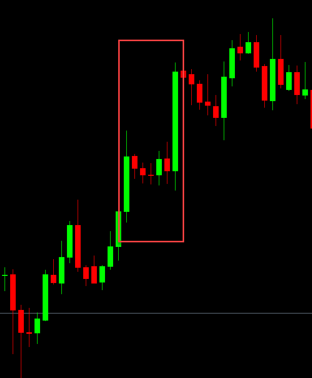 - In a trend scenario: pull-back → consolidation (small bodies) → continuation candle (large body) for riding the trend.