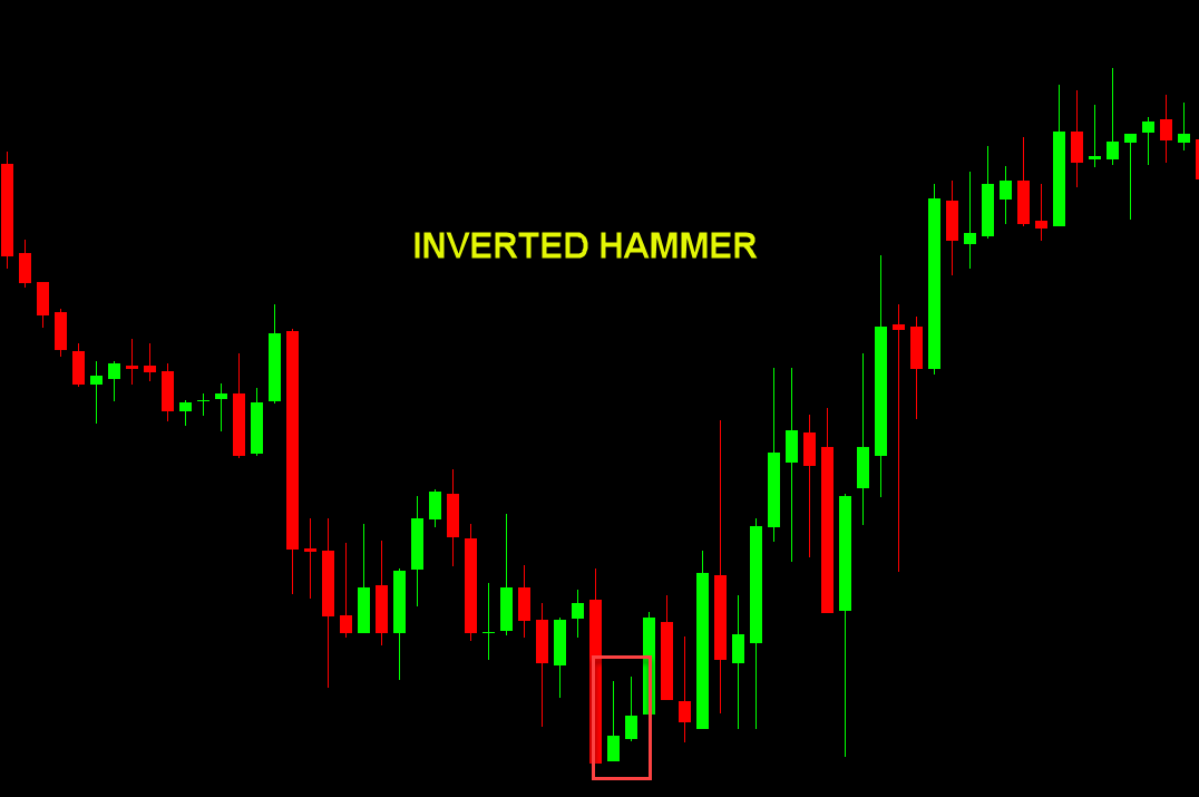 - Inverted Hammer: After downtrend – long upper wick, small body at bottom.