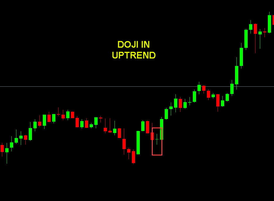 - Example: In an up-trend, you might see a doji, then the price resumes upward — the doji was just a breather.
