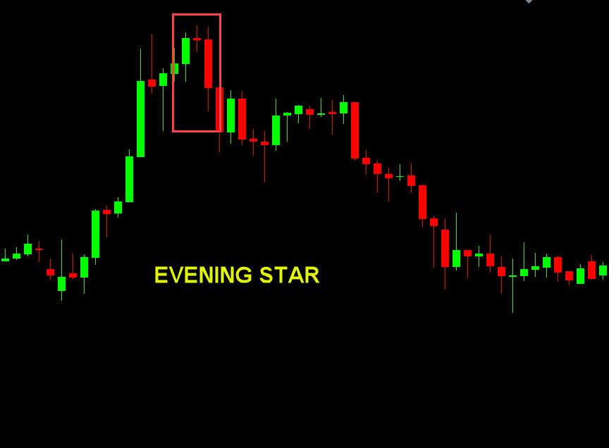 - Evening Star: The opposite for an uptrend reversal.