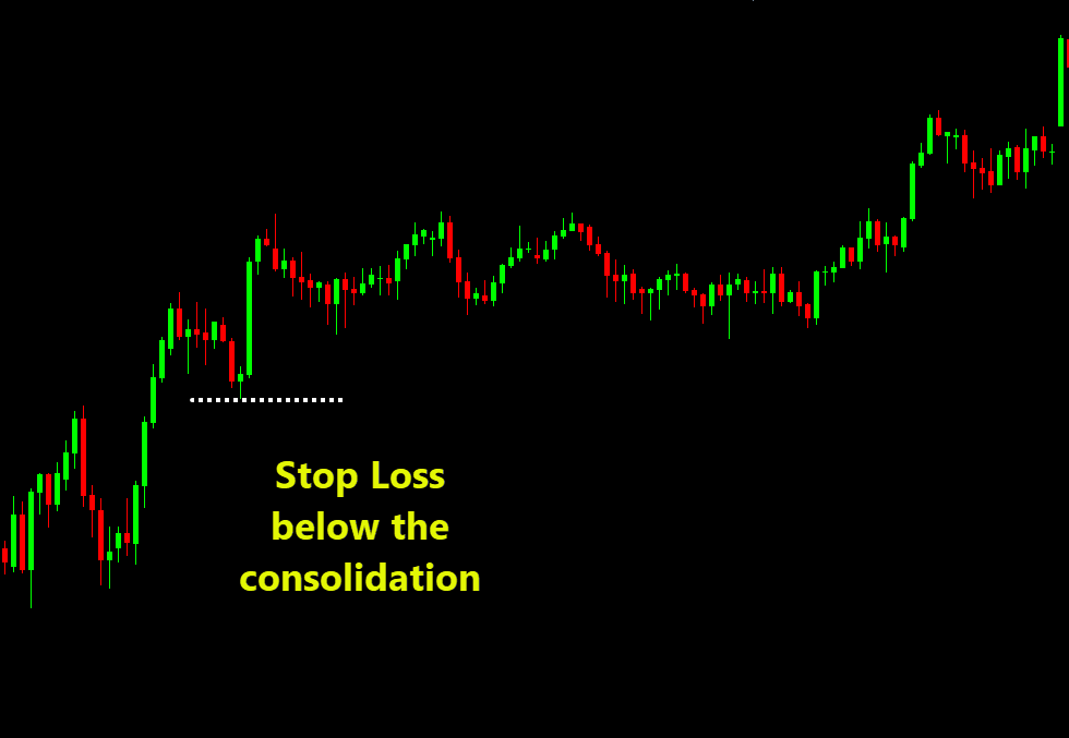 - The signal candle breaks or closes beyond the consolidation