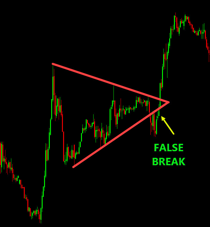 • False breakouts are common in triangles, especially when the breakout lacks volume or during low-liquidity sessions.