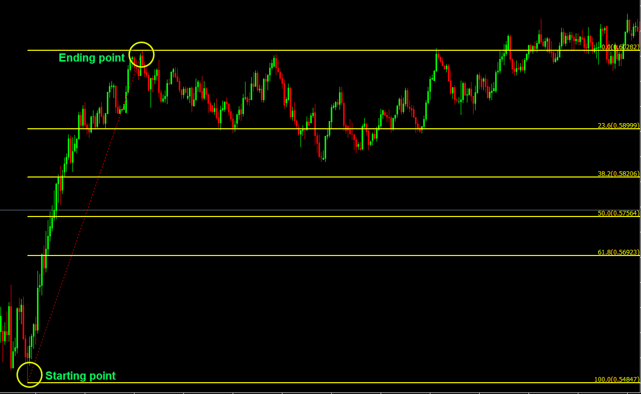 Your charting platform (like MT4, TradingView, etc.) will generate horizontal lines at the key Fibonacci percentages: