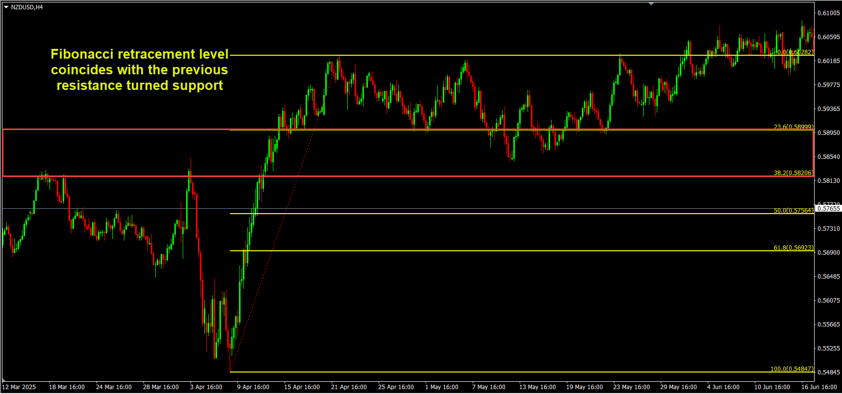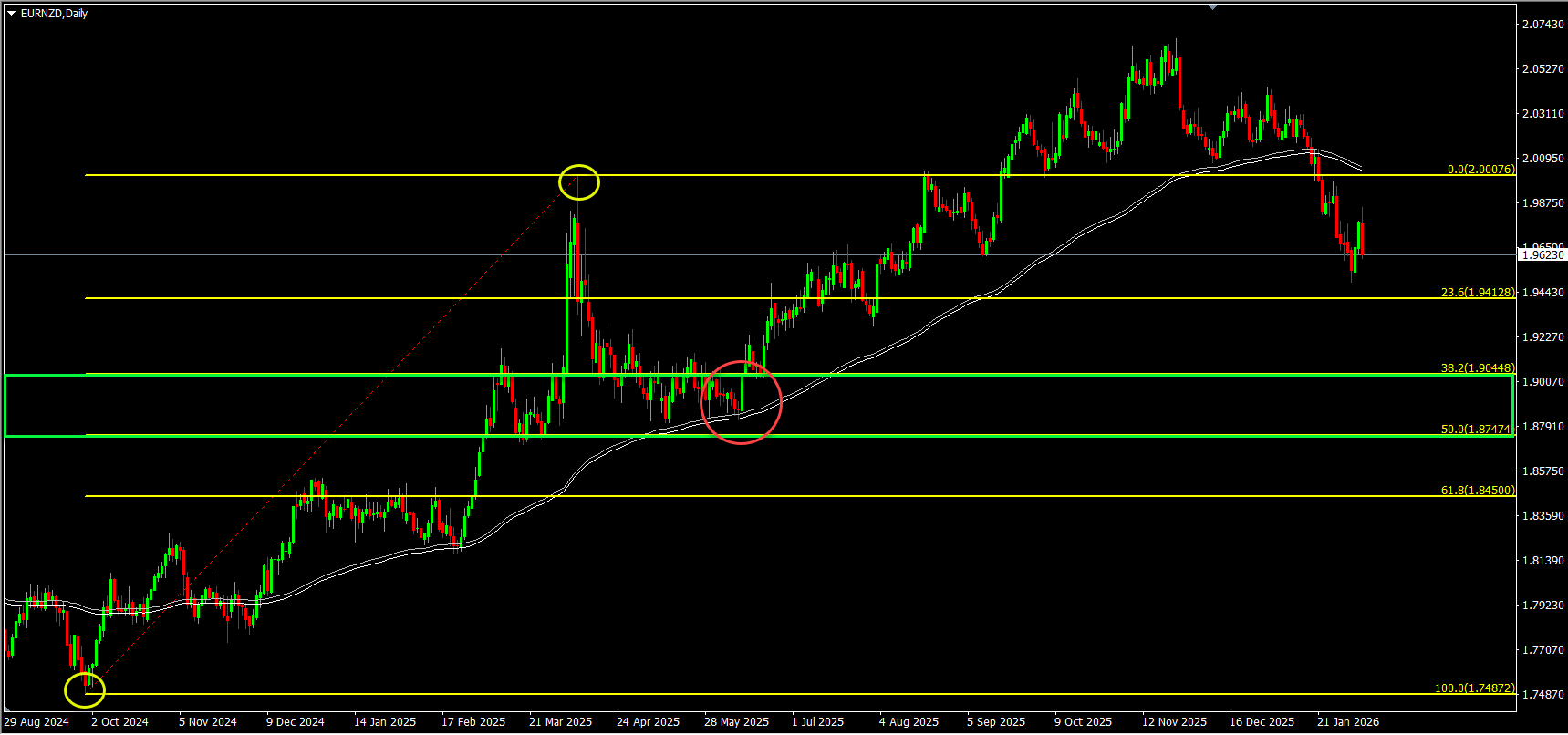 This can become a high-probability entry area because it aligns with both trend structure and retracement logic.