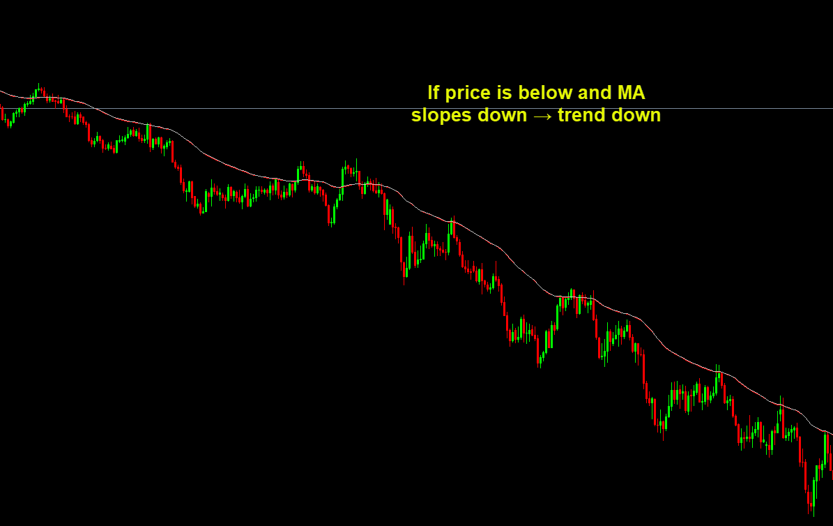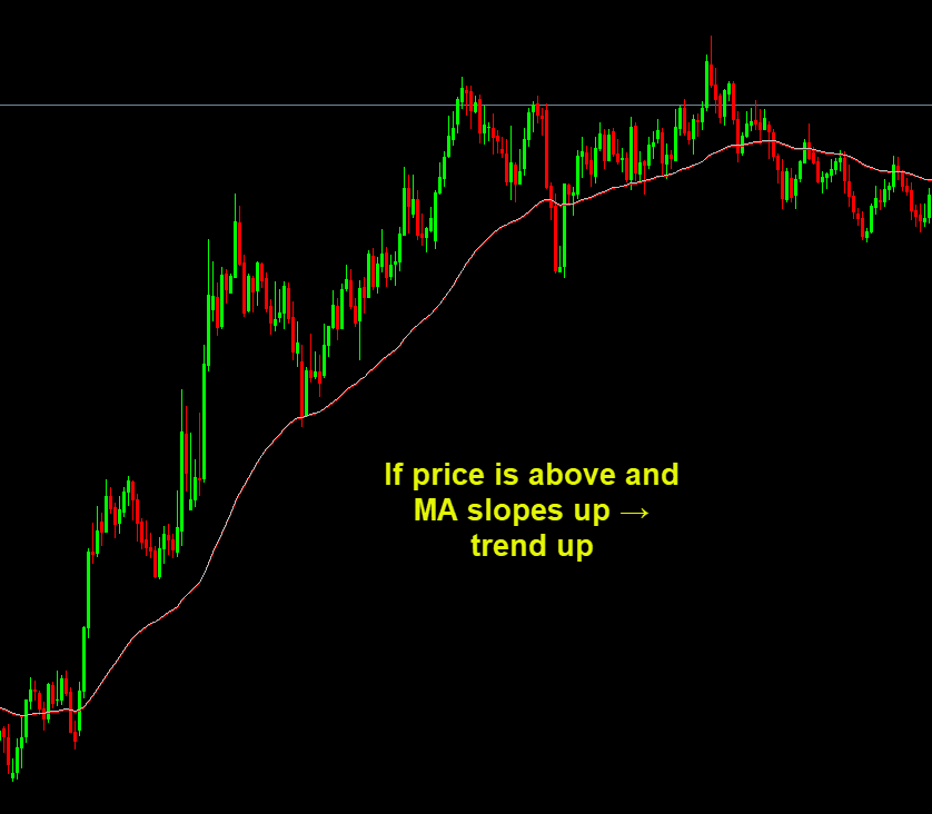 If price is above and MA slopes up → trend up If price is below and MA slopes down → trend down