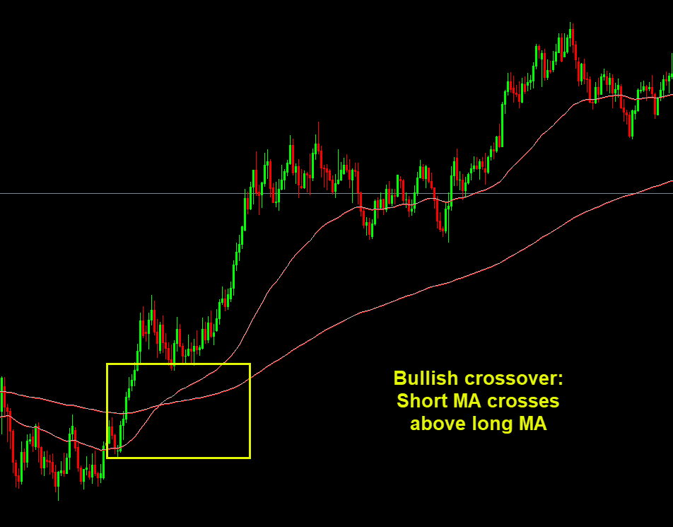 Bullish crossover: Short MA crosses above long MA (as explained above, for example 20 and 50, or 50 and 200) 📉
