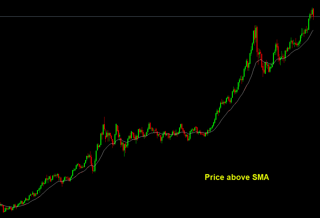 - Price above SMA ➝ Bullish trend