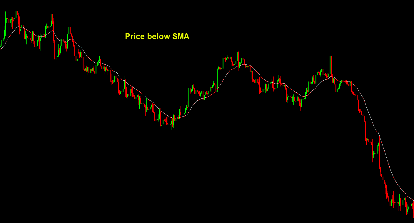 - Price below SMA ➝ Bearish trend