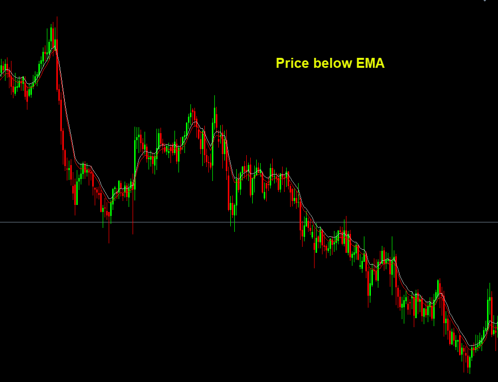 - Price below EMA → Trend is down
